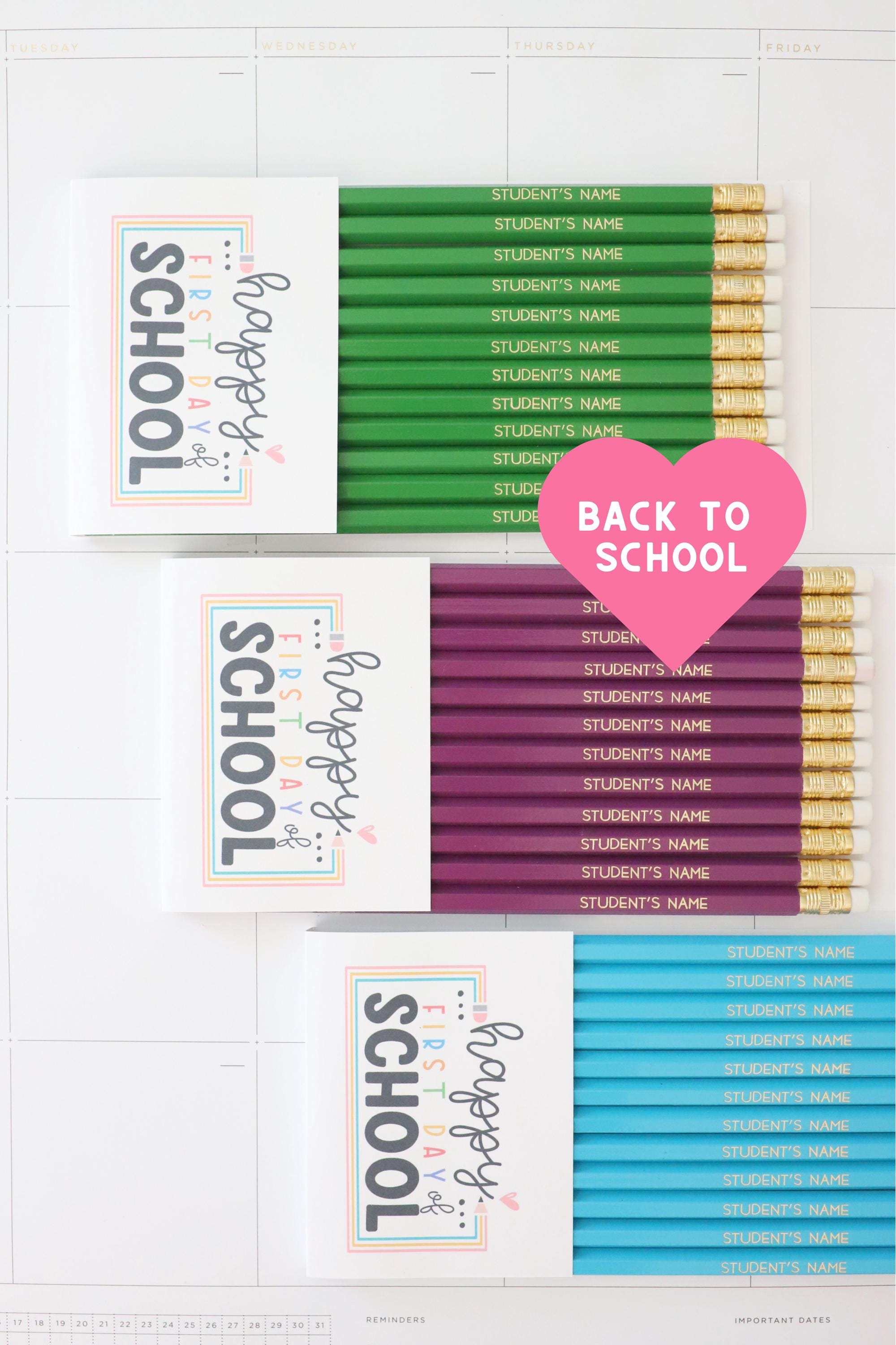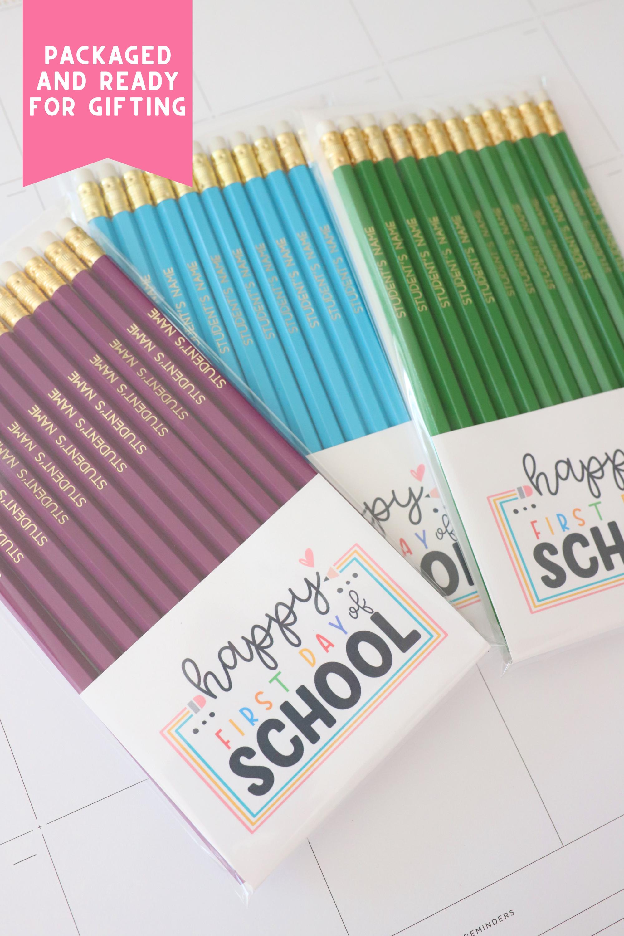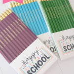 A set of 12 custom personalized pencils, packaged in our "Back To School" packaging.