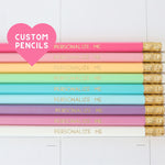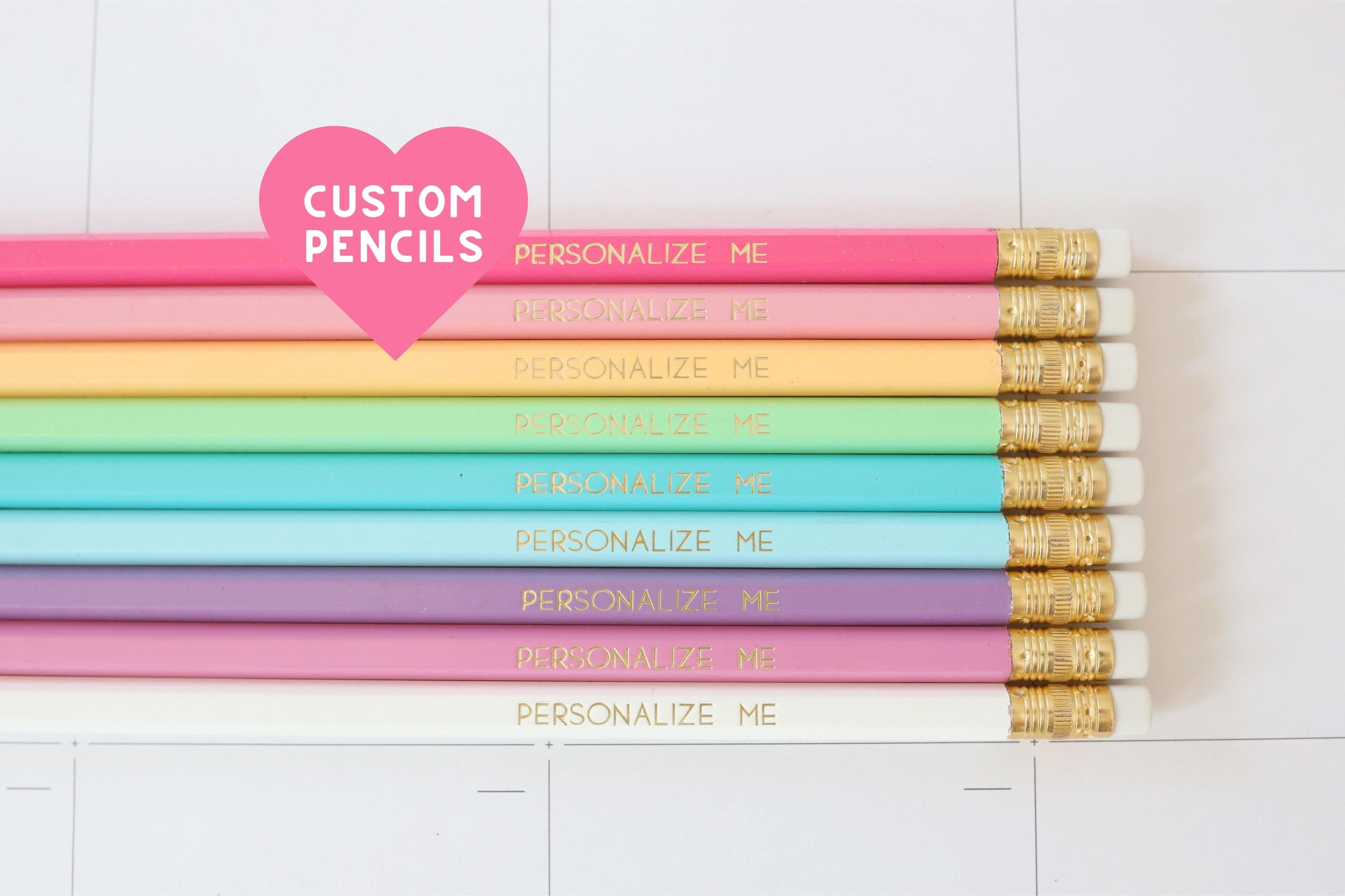 These custom colorful pencils make the perfect personalized gift for teachers, students, coworkers, or stationery lovers - each one is hand-stamped with your custom message. This beautiful Pastel Rainbow pencil set comes prepackaged and is ready for gifting!