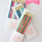 - Each pencil is individually hand-stamped with gold foil for a unique, personalized touch.